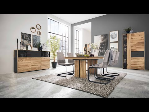 Der Couchtisch aus der Interliving Esszimmer Serie 5604 vereint helles, geöltes Eiche rustico Echtholzfurnier mit stilvollen Akzenten in mattem Anthrazit.