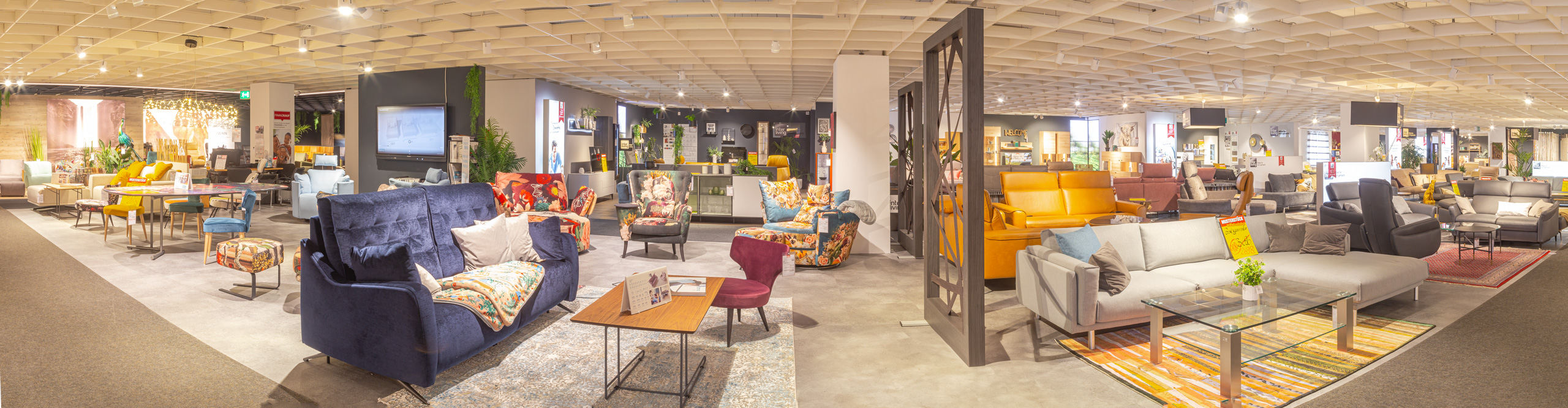 Im 1. Obergeschoss finden Sie alles, was Ihr Wohnzimmer zum Wohlfühlort werden lässt - Couchgarnituren, Couchtische, Wohnwände, Vitrinen, Kommoden und mehr. Die ausgestellten Möbel sind frei konfigurierbar - lassen Sie sich von unseren Fachberatern bei der Auswahl unterstützen und sitzen Sie Probe.