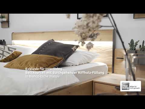 Die Interliving Schlafzimmer Serie 1027 kombiniert moderne Materialien mit durchdachtem Design, um Ihnen ein harmonisches und gemütliches Ambiente zu bieten. Die besondere Riffholz-Füllung in Bianco-Eiche massiv und die elegante Schwebetürenoptik mit breiter Riffholz-Bauchbinde machen dieses Schlafzimmer zu einem echten Highlight. Nutzen Sie den großzügigen Stauraum der Schrankmöbel, um Ordnung und Stil in Ihr Schlafzimmer zu bringen.