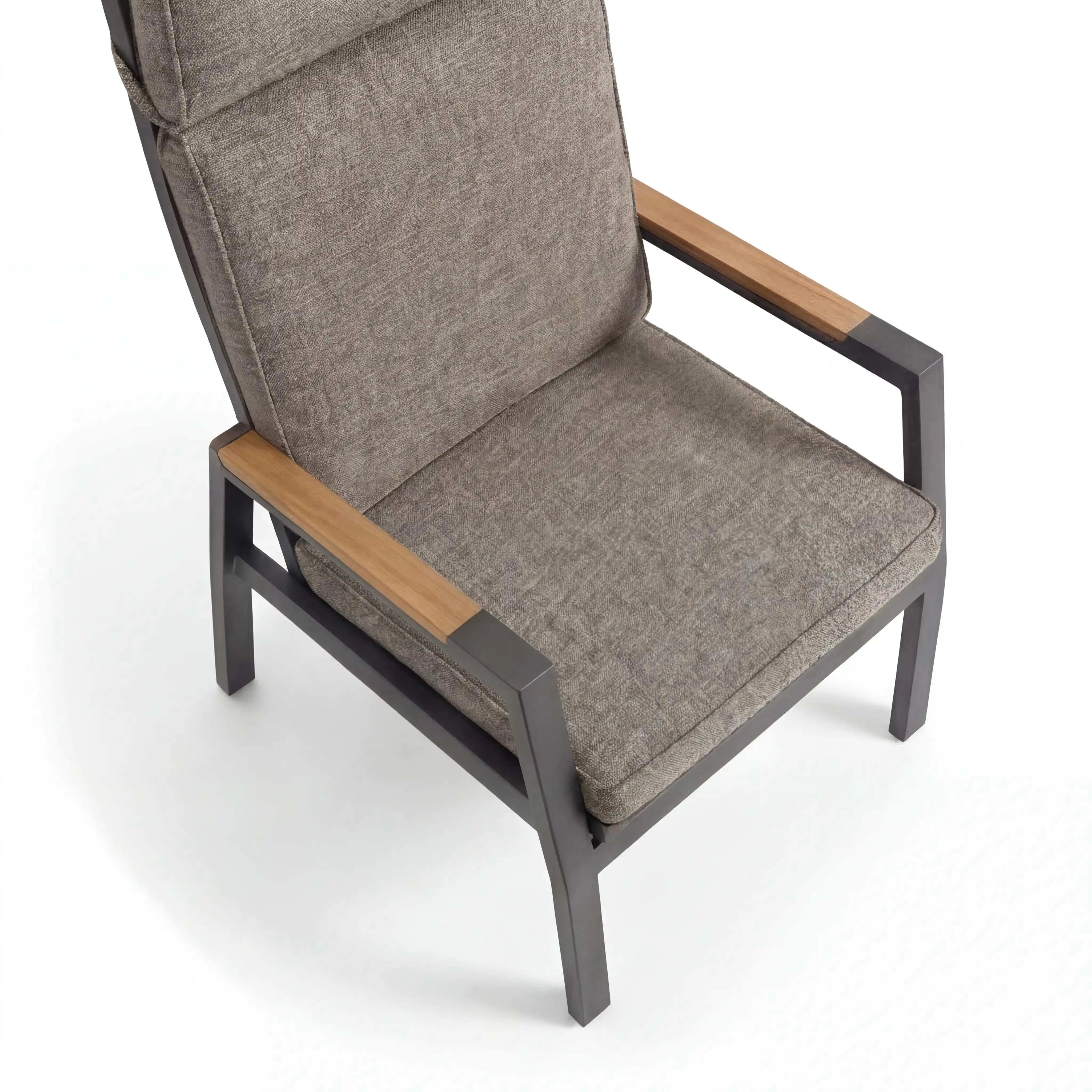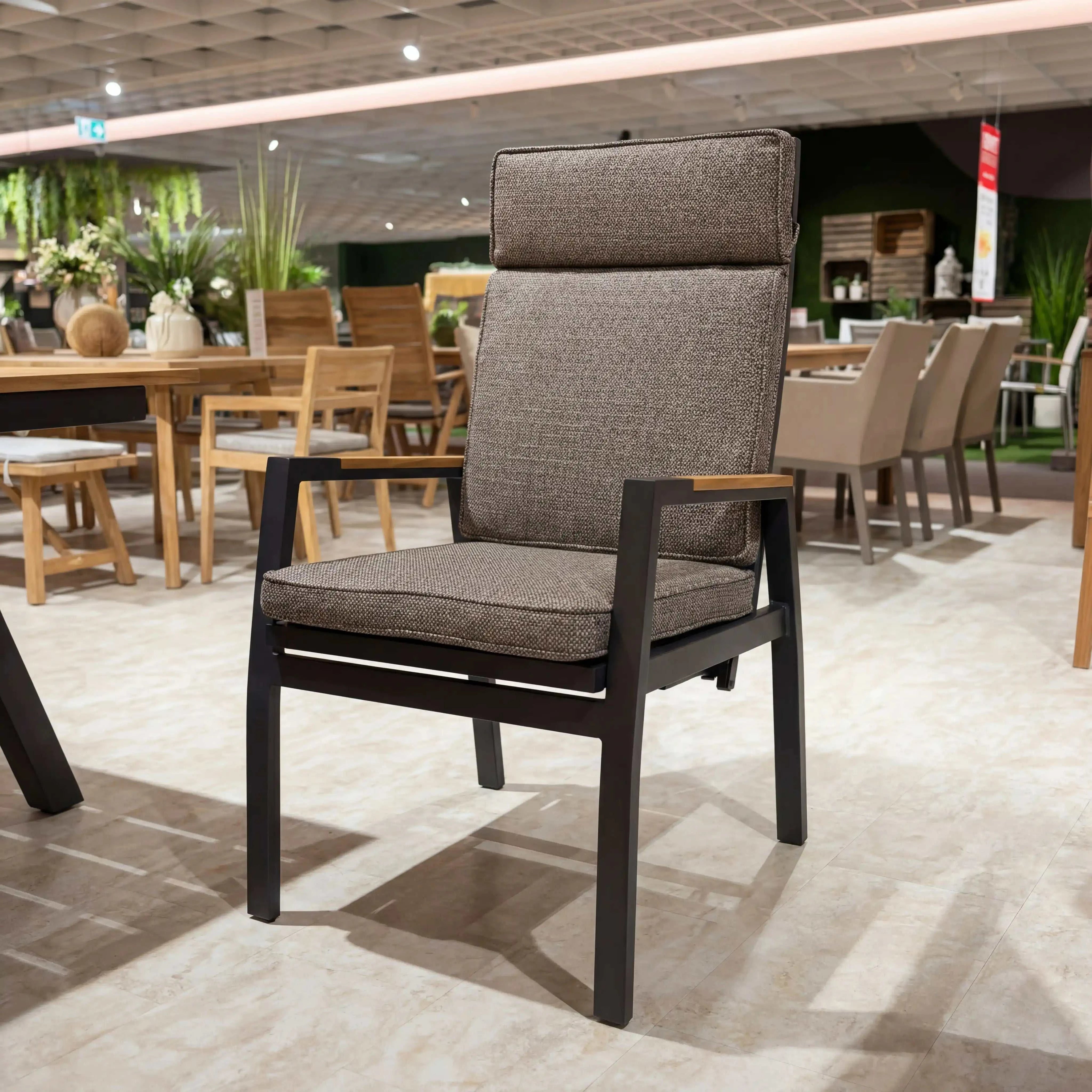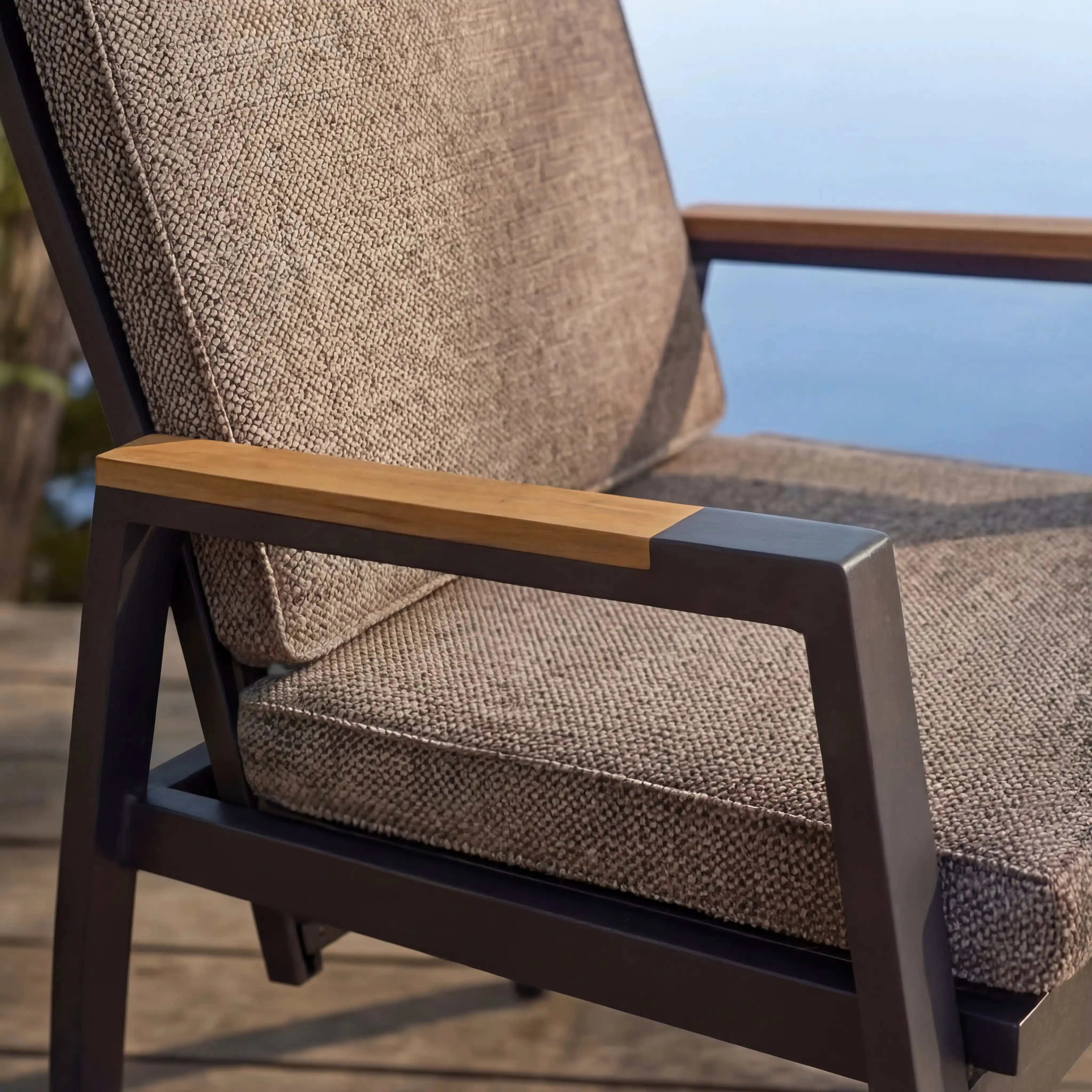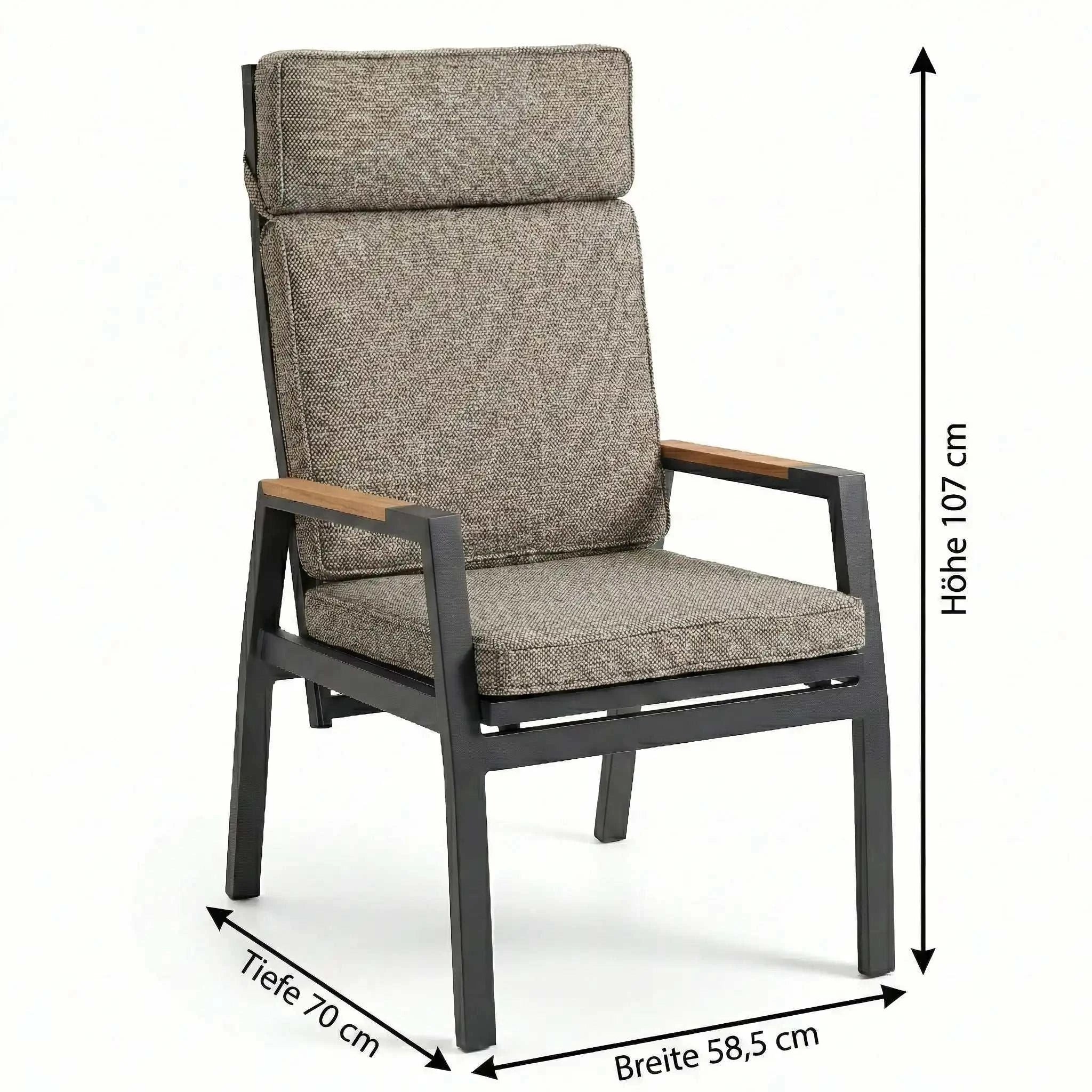 • Positionsstuhl Spoga mit Aluminiumgestell, Textilene-Sitz und Teakholz-Armlehnen für Outdoor-Komfort