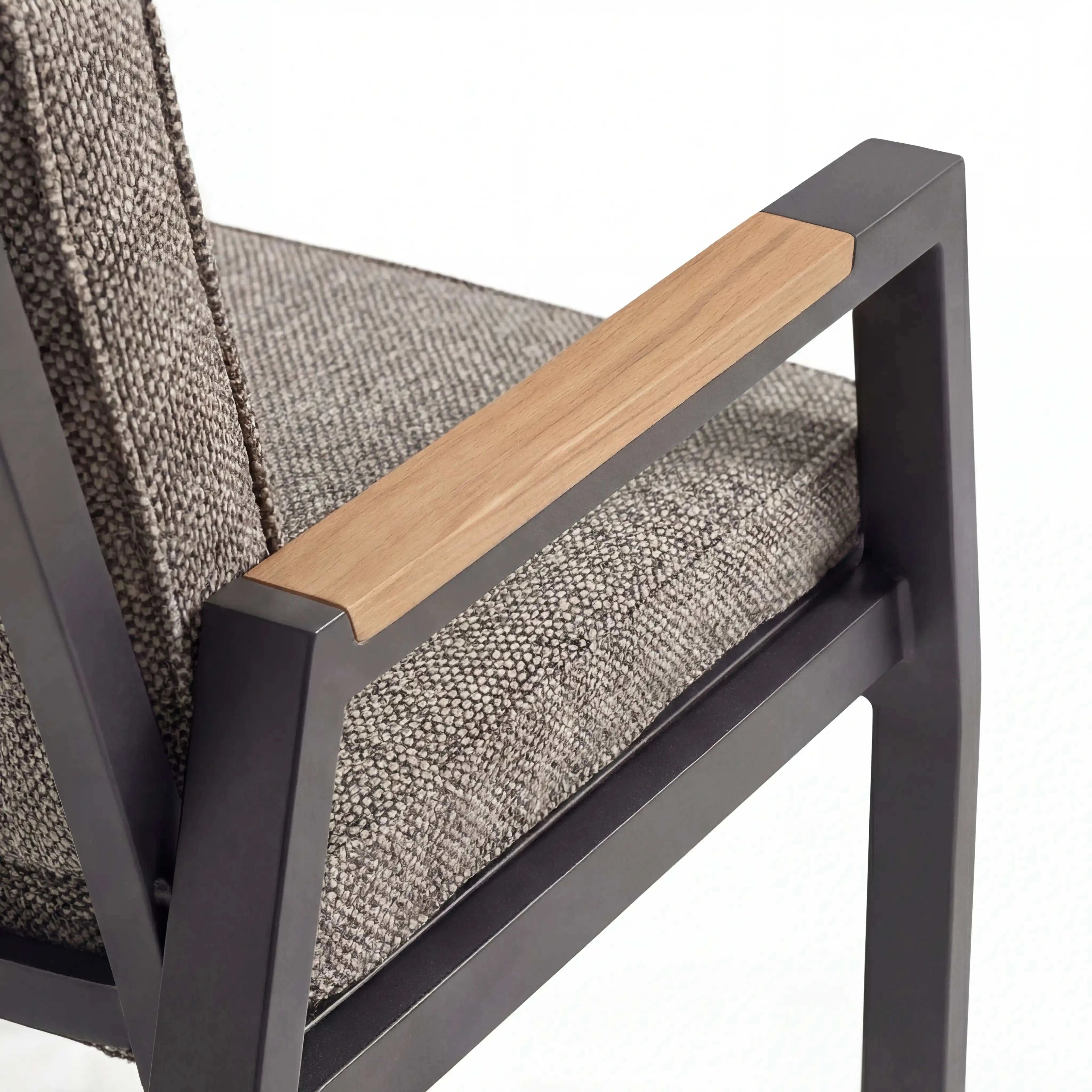 • Moderner Positionsstuhl Spoga mit Aluminiumgestell, Teakholz-Armlehnen und Textilene-Sitzfläche