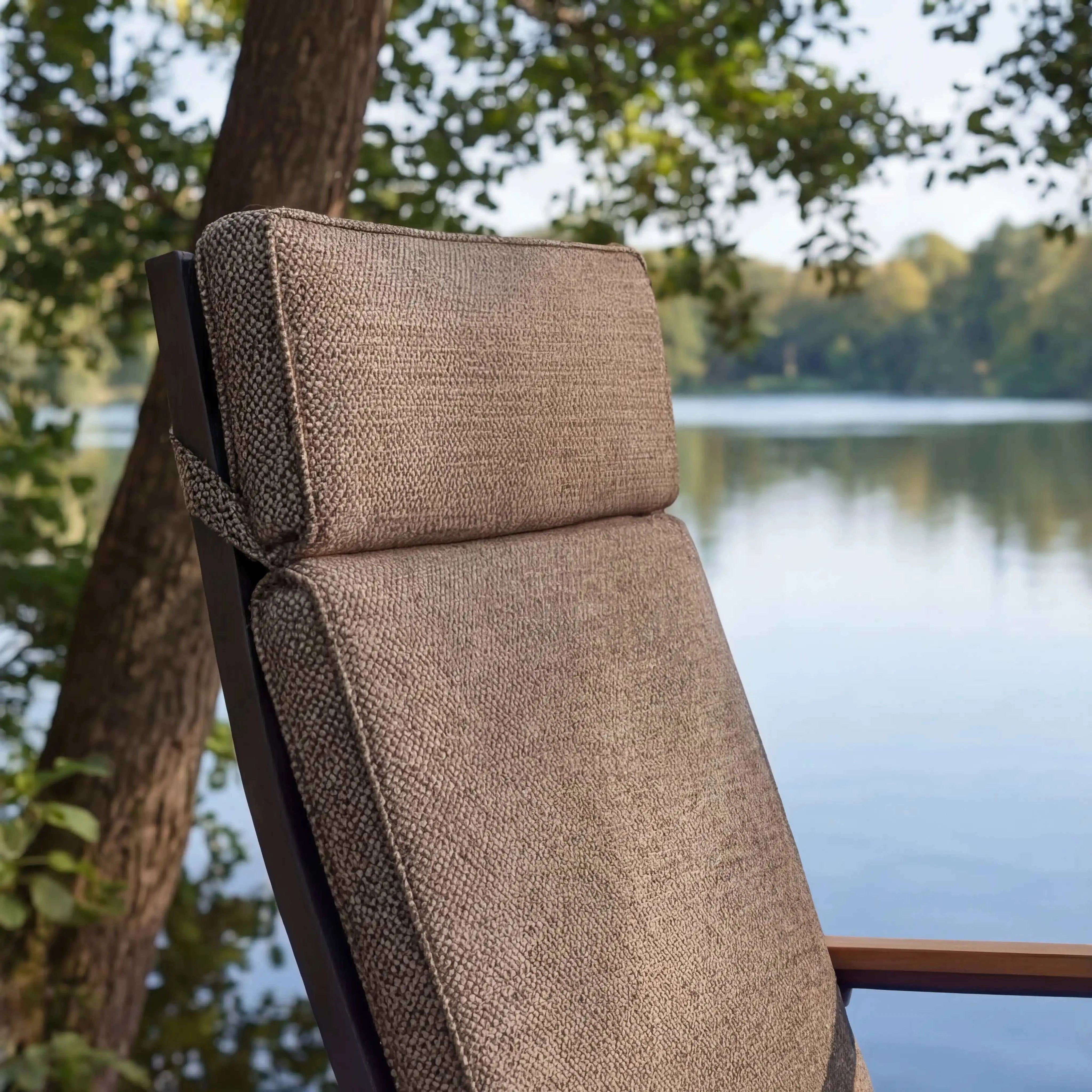 Für angenehmes Sitzen ist ein Sitzkissen inklusive. Ein hochwertiges Detail ist die Teakholz-Verzierung an der Armlehne (Tectona grandis), die dem Stuhl einen warmen, natürlichen Akzent verleiht. Zusätzlich verfügt das Modell über eine Sitztiefenverstellung – ideal, wenn du die Sitzposition individuell anpassen möchtest.