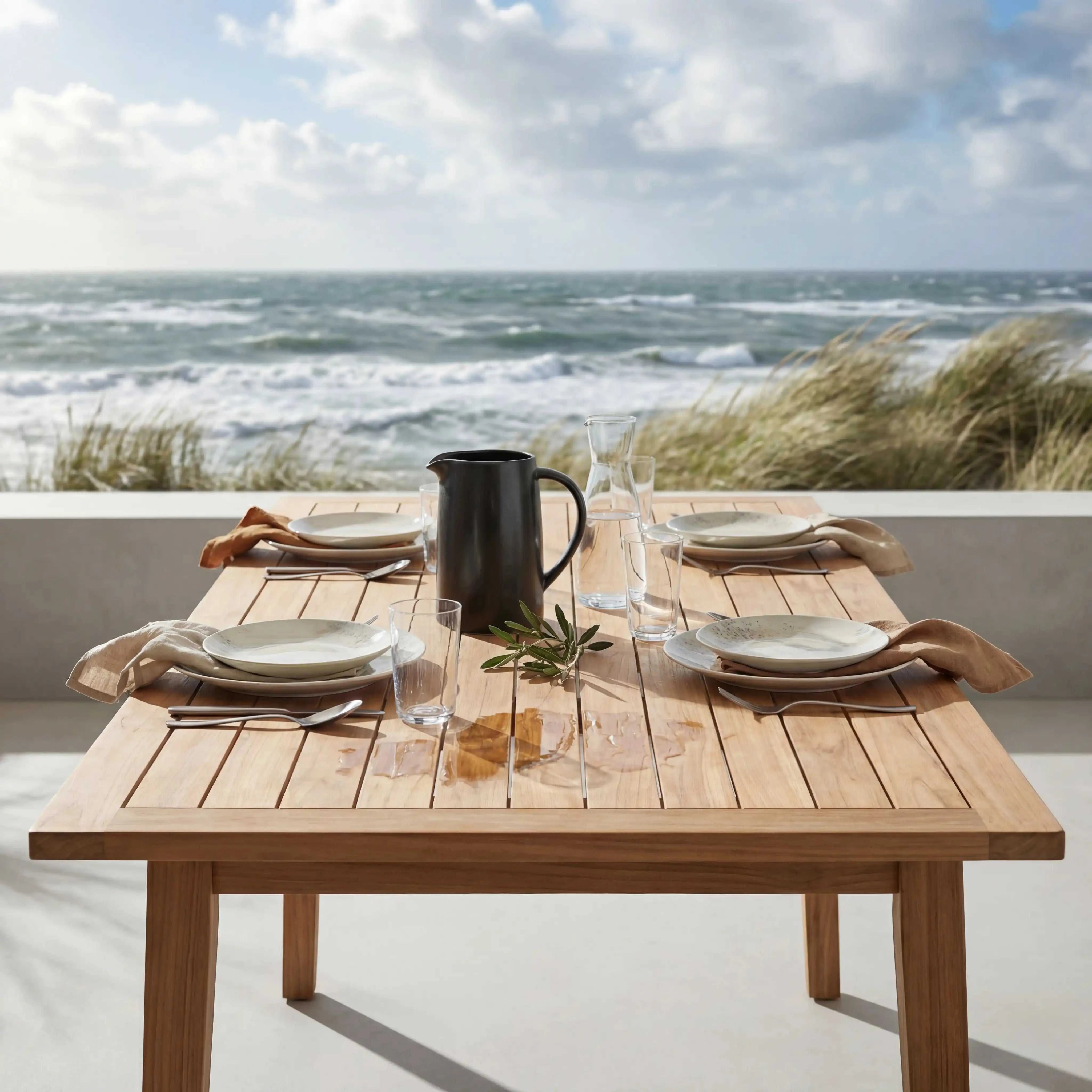 Der Ausziehtisch Malaga ist ein hochwertiger Gartentisch aus FSC®-zertifiziertem Teakholz, der natürliche Optik mit praktischer Flexibilität verbindet. Dank Butterfly-Auszugmechanismus lässt sich die Tischlänge von 150 cm auf 210 cm erweitern – ideal, wenn aus dem Alltagstisch schnell ein großzügiger Esstisch für Gäste werden soll.