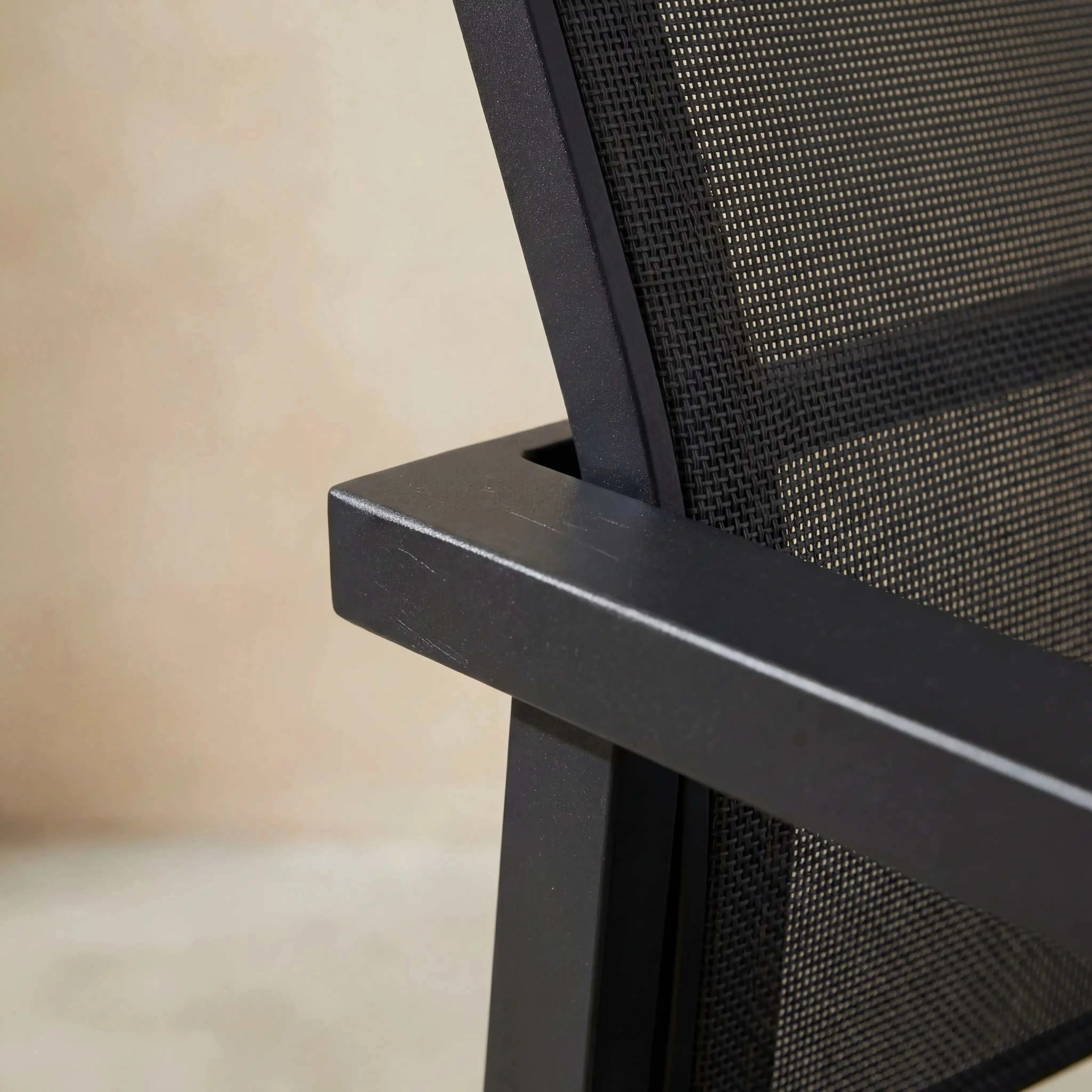 • Moderner Outdoor-Stapelsessel Kari mit hoher Rückenlehne und pulverbeschichtetem Aluminiumgestell in Anthrazit