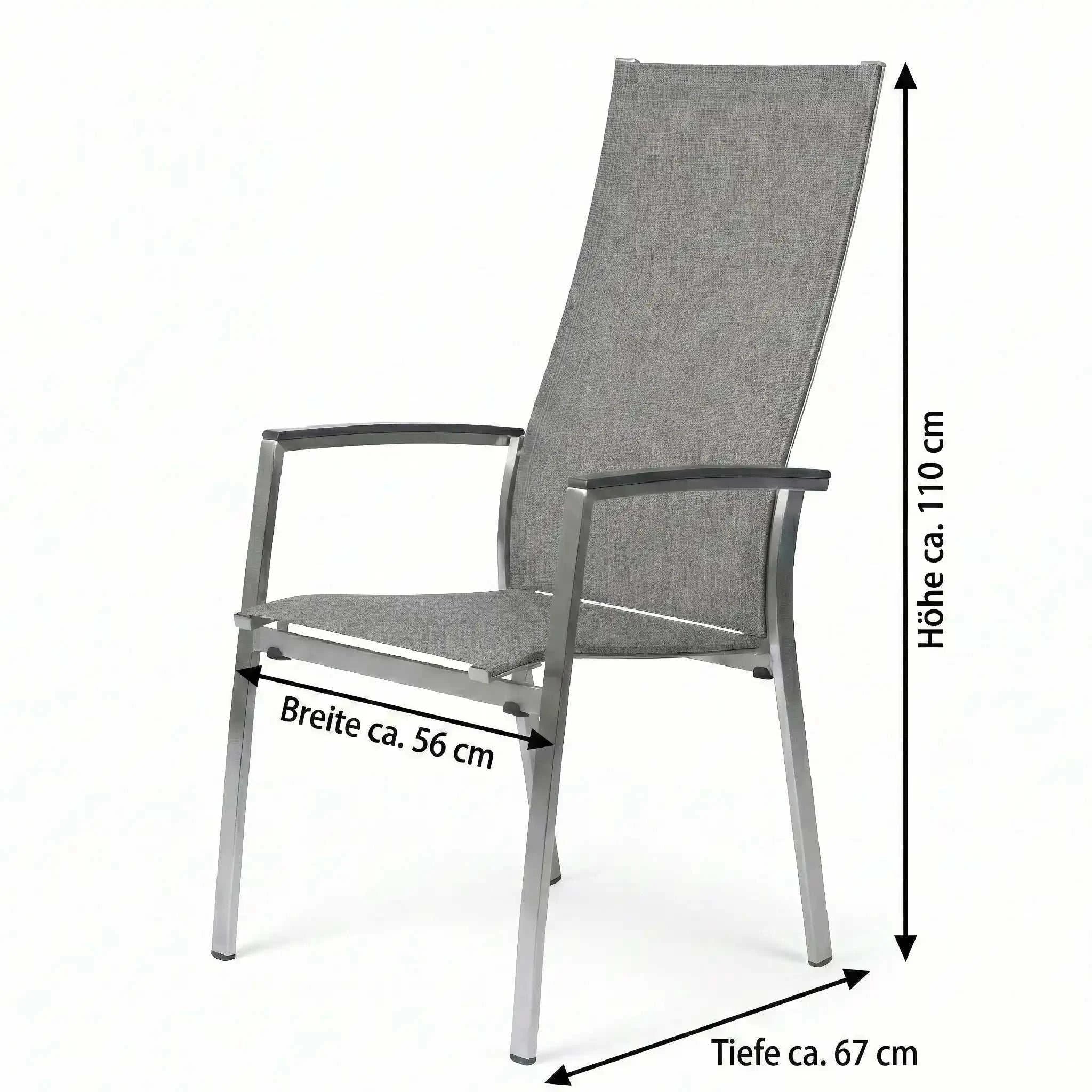 Der Stapelsessel Mika ist ein moderner Hochlehner für den Outdoor-Bereich, der zeitlose Eleganz mit praktischer Funktion verbindet. Das Edelstahlgestell wirkt hochwertig und stabil, während die Textilen-Oberfläche in Leinen Grau eine ruhige, moderne Optik schafft. Aluminiumarmlehnen in Anthrazit setzen einen klaren Kontrast und runden das Design stimmig ab.