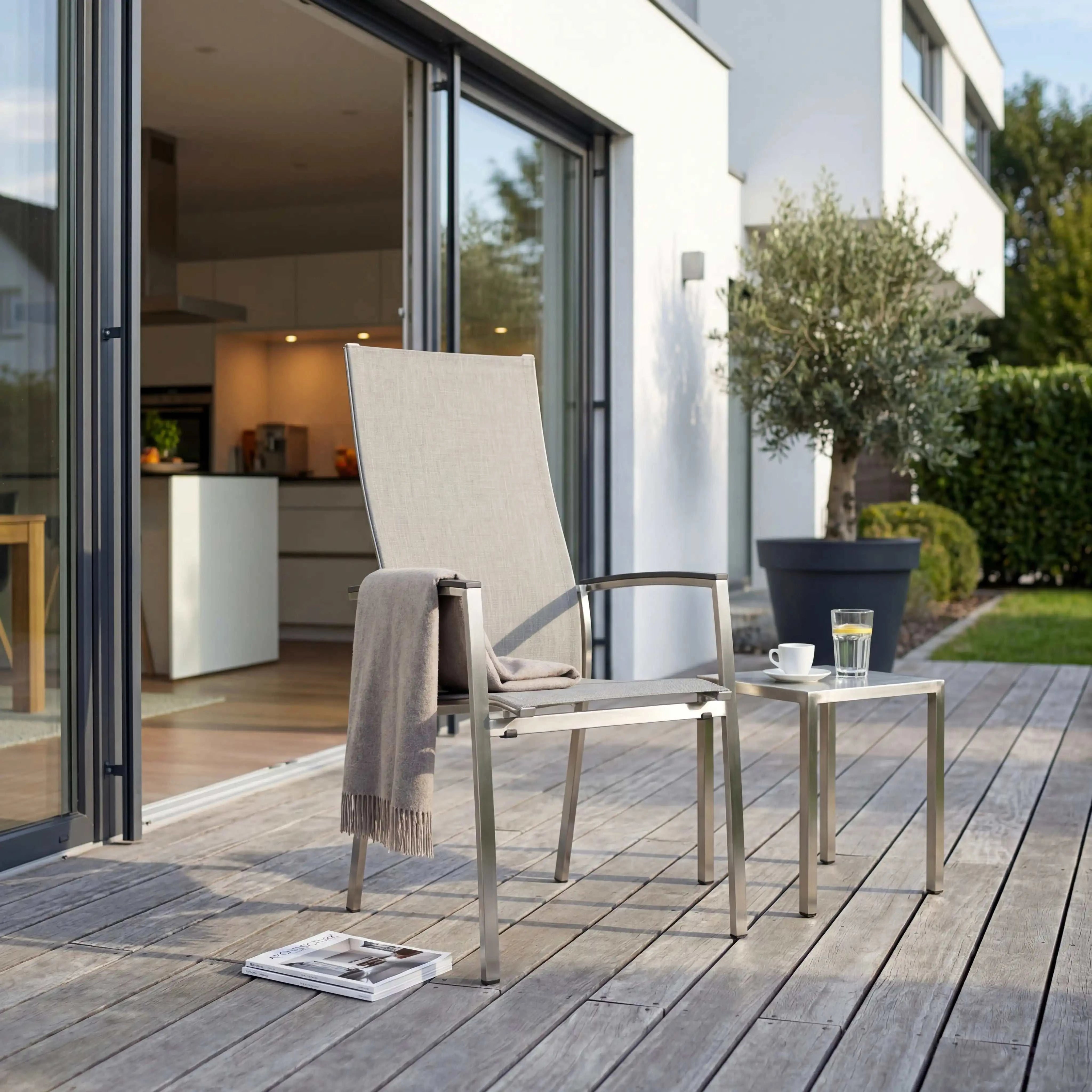 Als Stapelsessel ist Mika ideal für flexible Sitzgruppen: Bei Bedarf lässt er sich platzsparend verstauen. Die hohe Rückenlehne ist für entspanntes Sitzen gedacht – perfekt für lange Abende draußen. In den gelieferten Angaben tauchen teils abweichende Werte (z. B. Gewicht und Rückenlehnenhöhe) auf; ich habe sie transparent in den Specs aufgeführt.