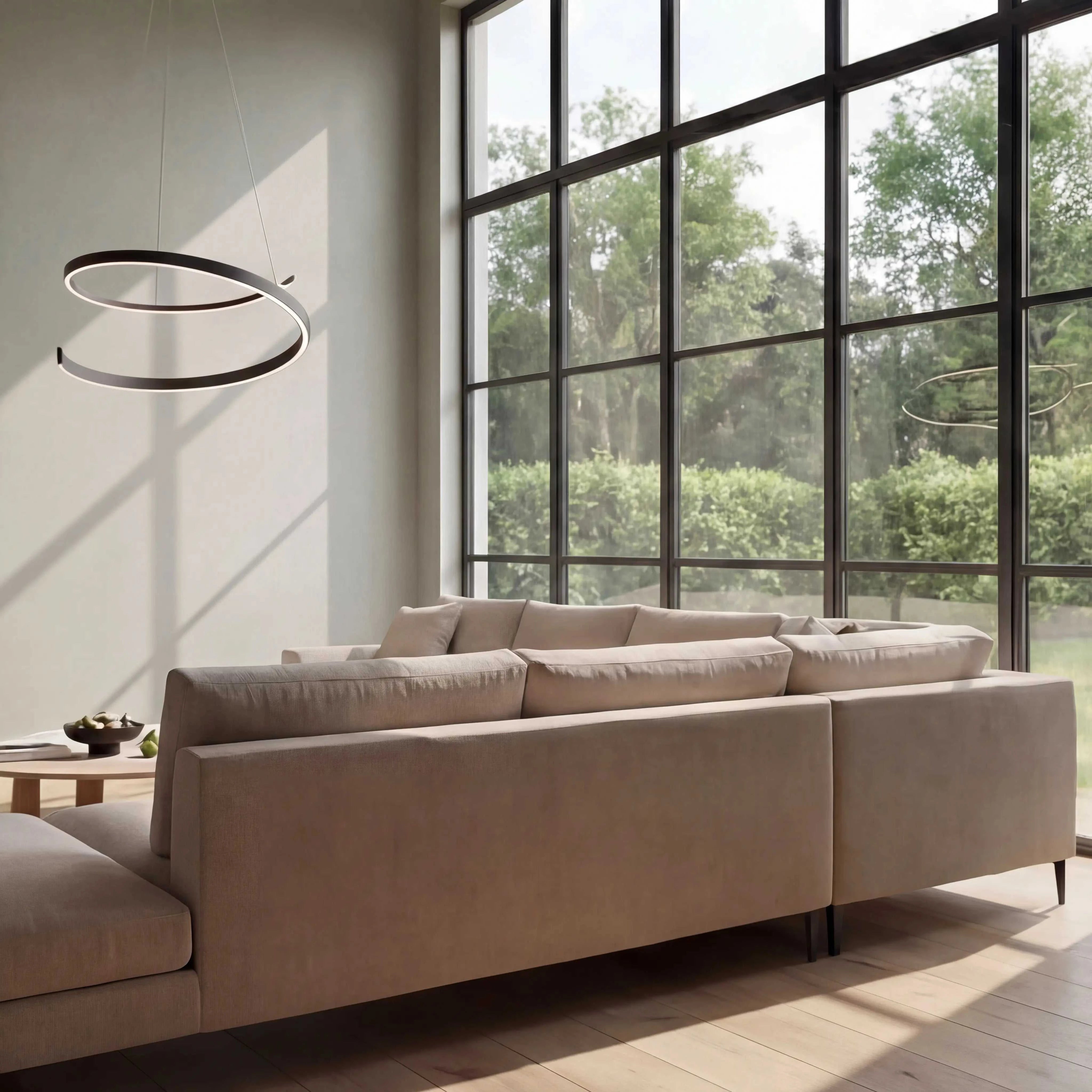 Die Pendelleuchte in Schwarz matt liefert kraftvolle 5950 Lumen bei 50 Watt. Extern dimmbar per Phasenabschnittsdimmer. Maximale Abhängehöhe: 200 cm.