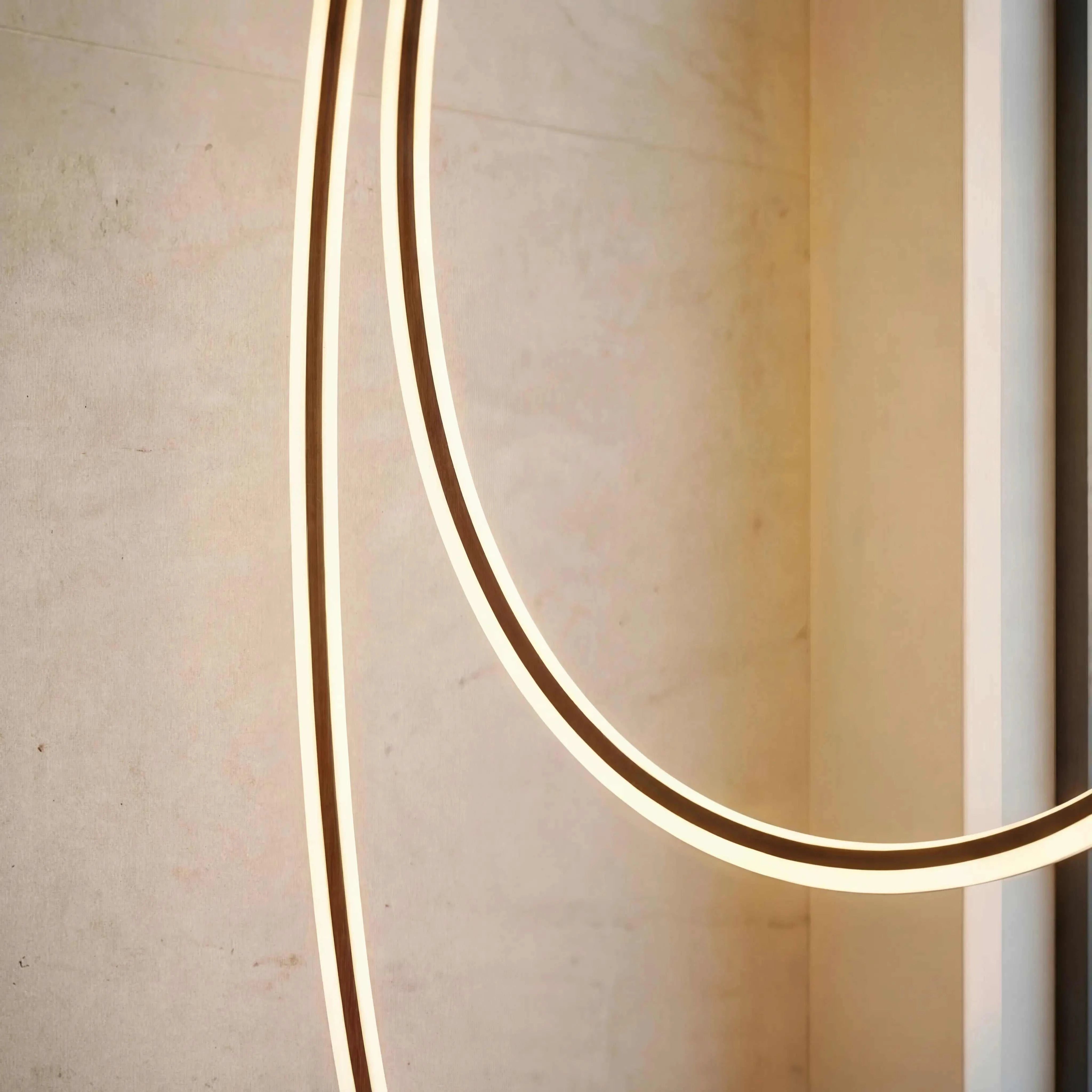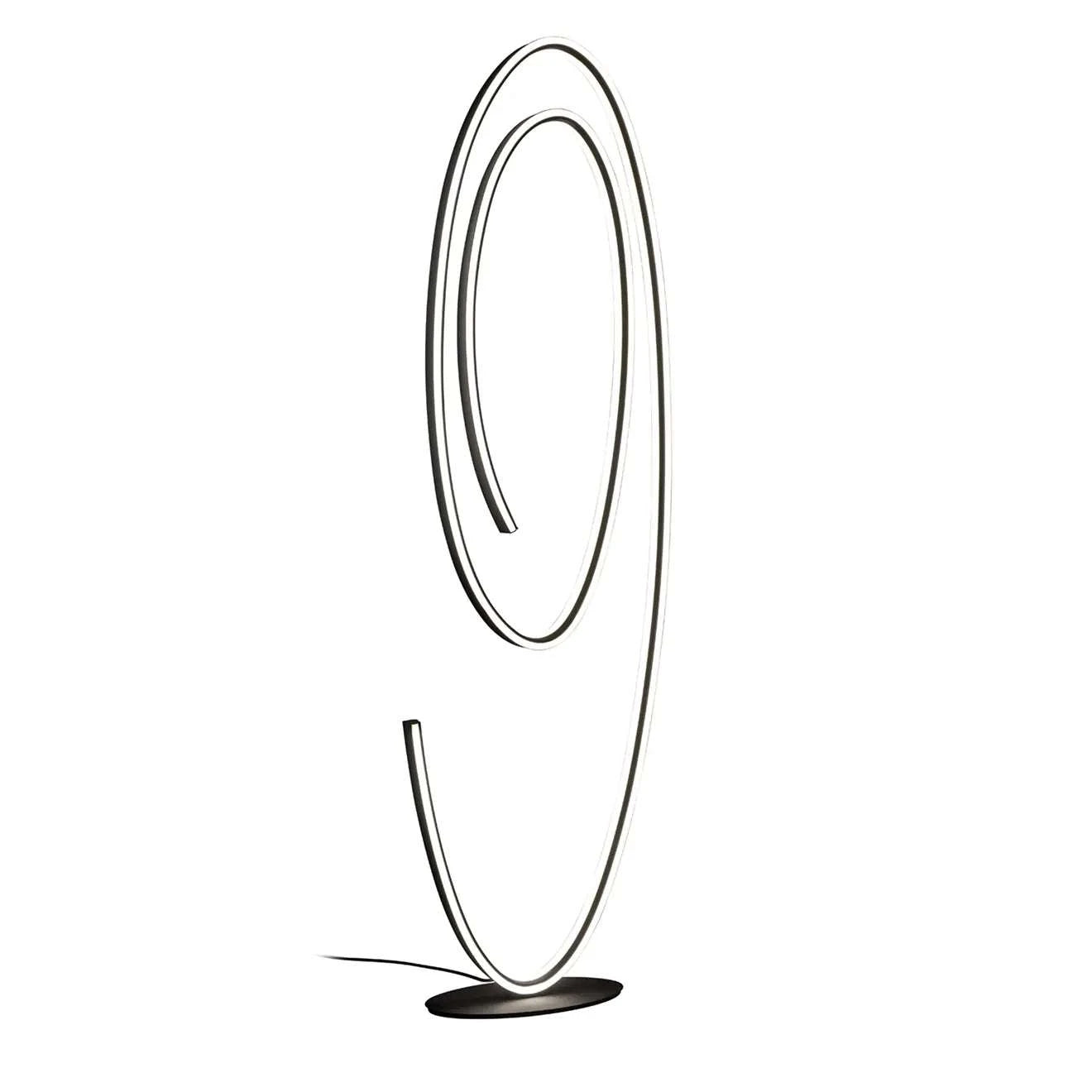 Die Stehleuchte in Schwarz matt ist mit 175 cm Höhe und 6400 Lumen eine imposante Lichtquelle. Die skulpturale-Formensprache macht sie zum Blickfang in jedem großzügigen Raum.