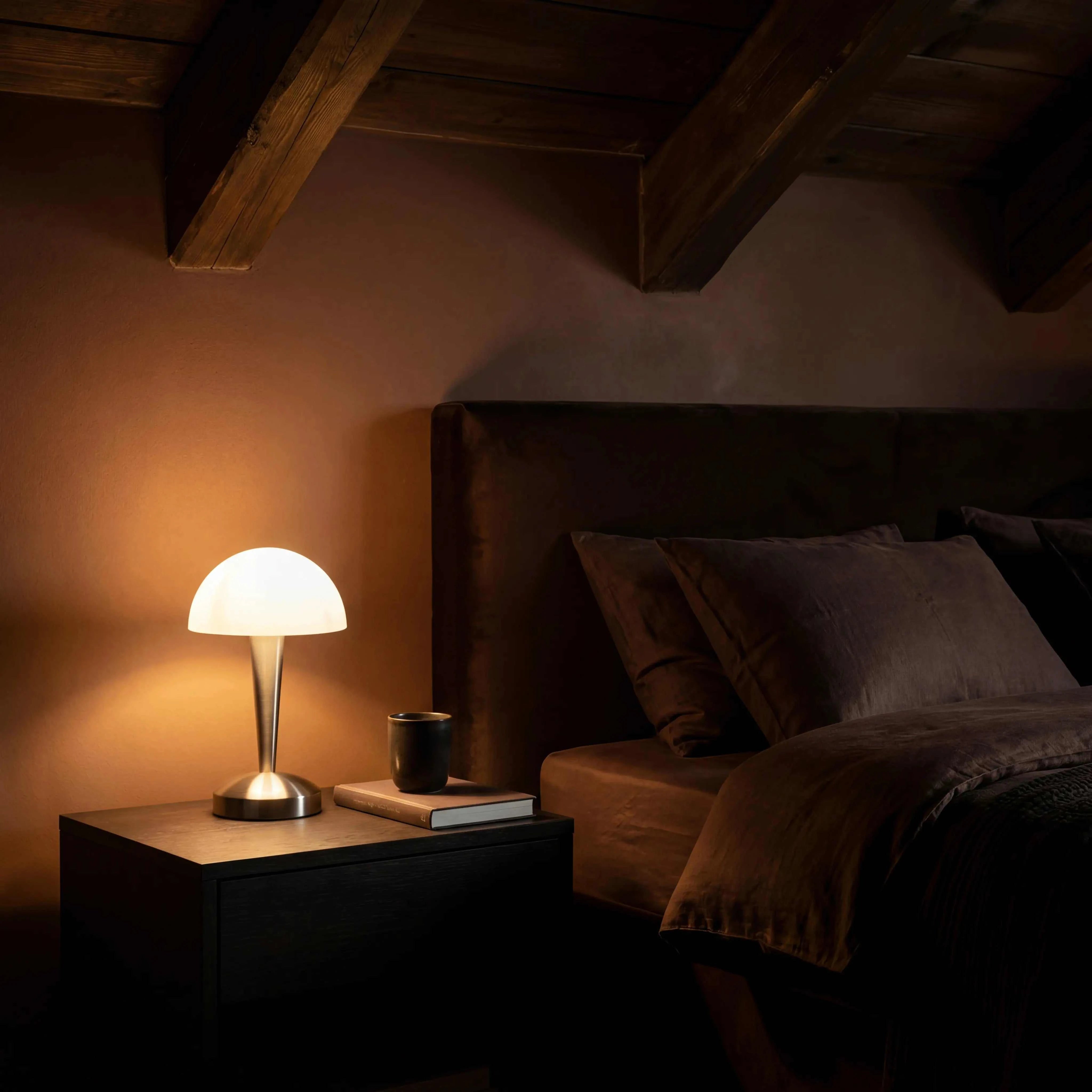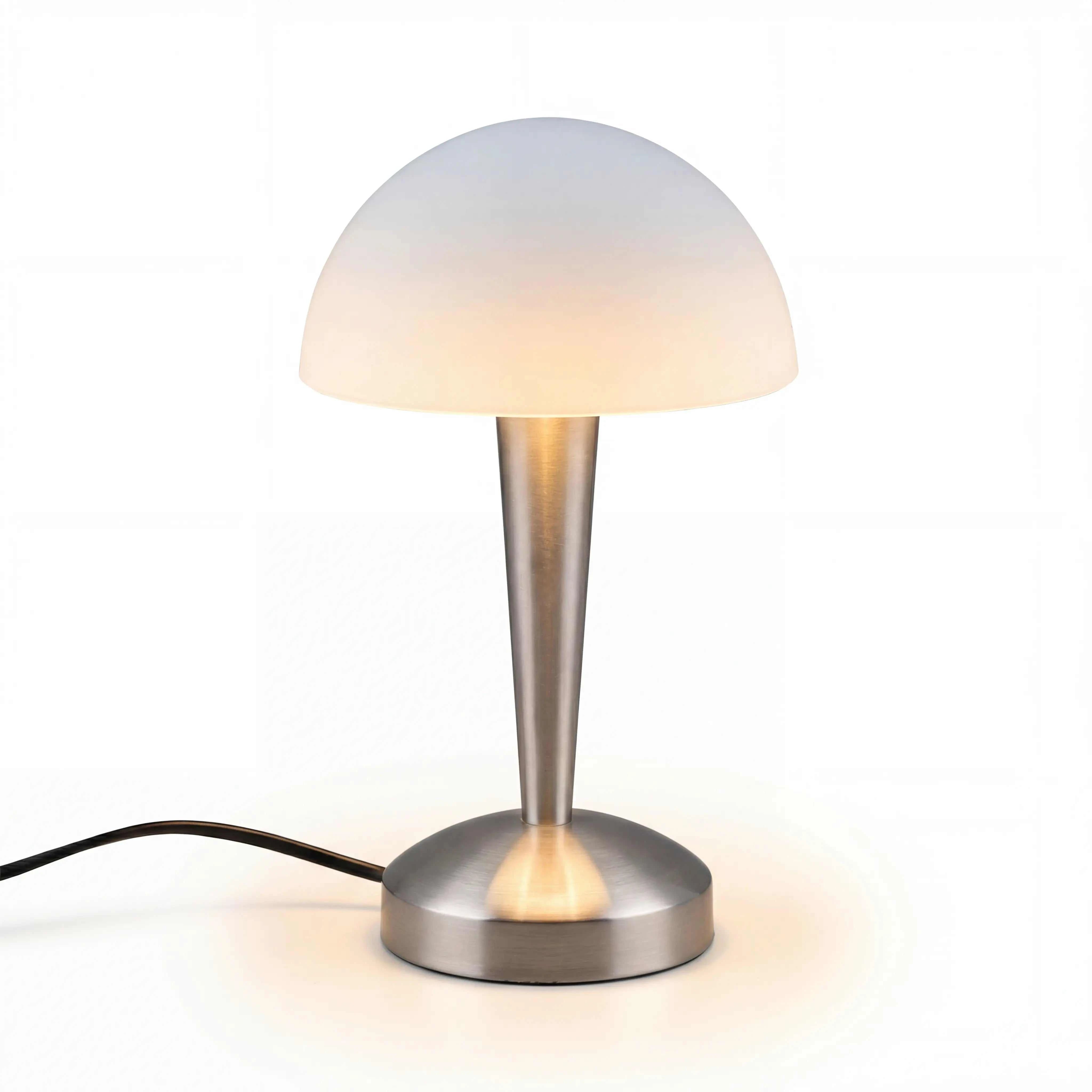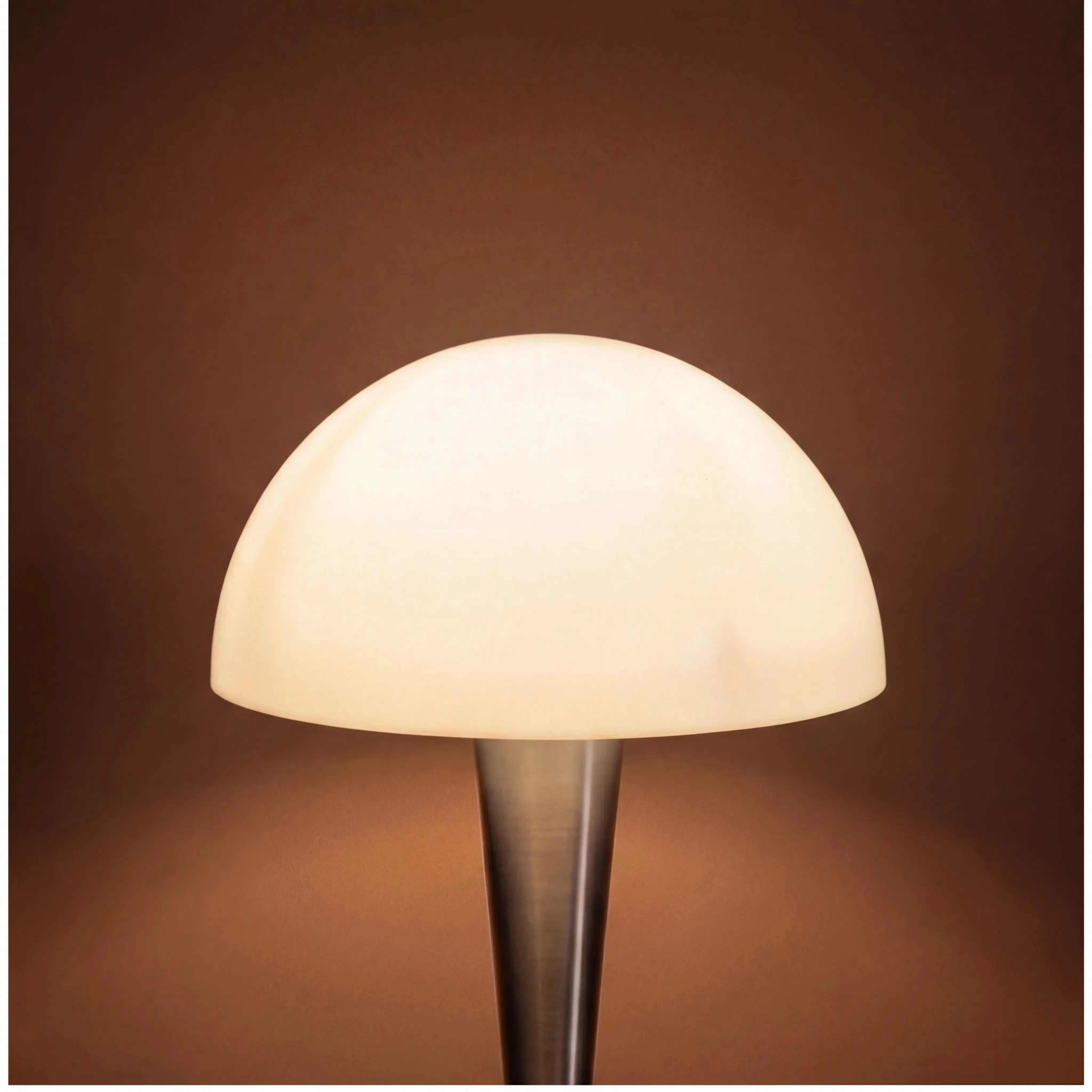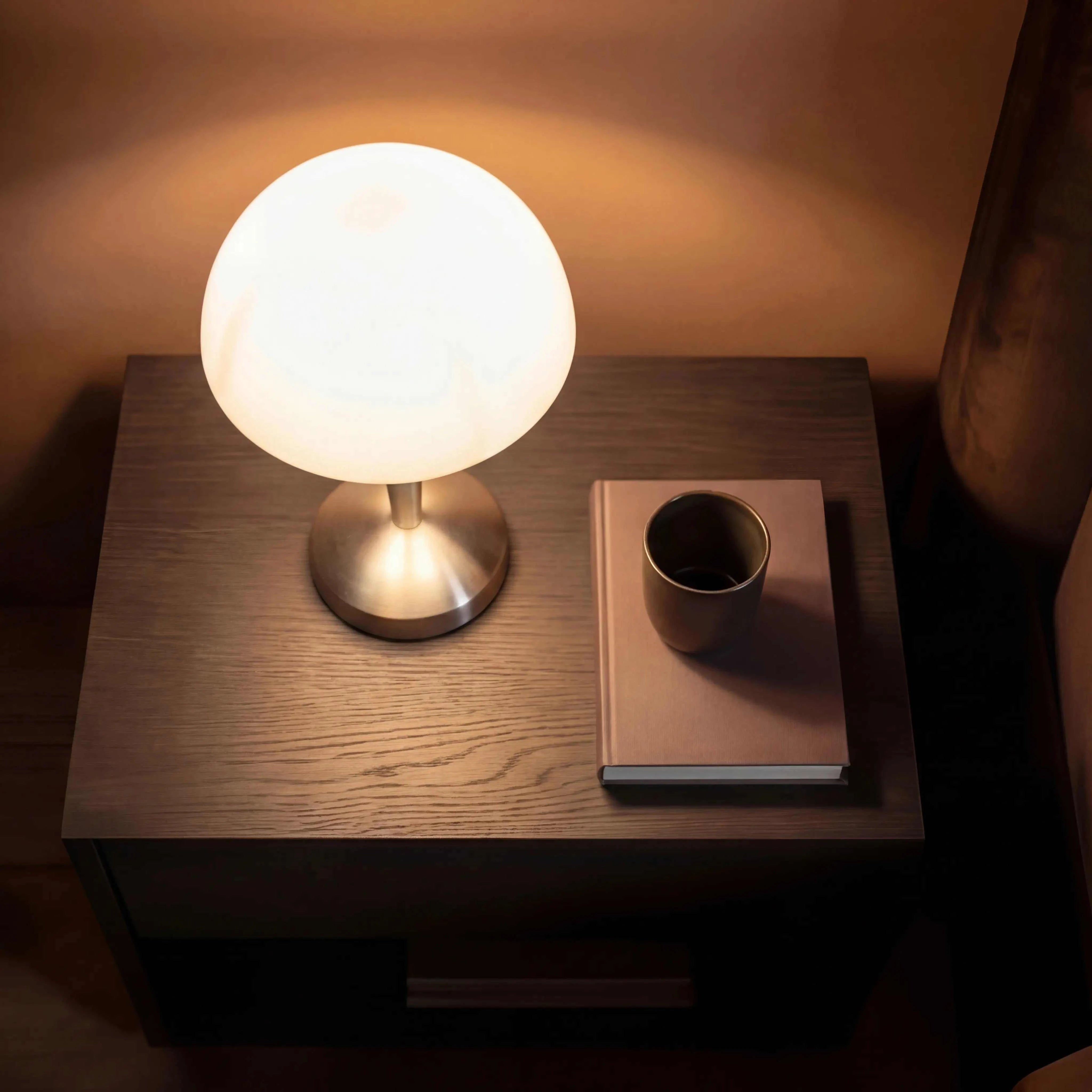 Mit einer kompakten Grundfläche von nur 12 × 12 cm und einer Gesamthöhe von 30 cm passt die Leuchte auch auf schmale Ablagen und Regale. Der Schnurschalter ermöglicht bequemes Ein- und Ausschalten direkt am Kabel. Die Fassung E14 bietet volle Flexibilität bei der Leuchtmittelwahl – ob warmweißes Ambiente oder helles Leselicht.